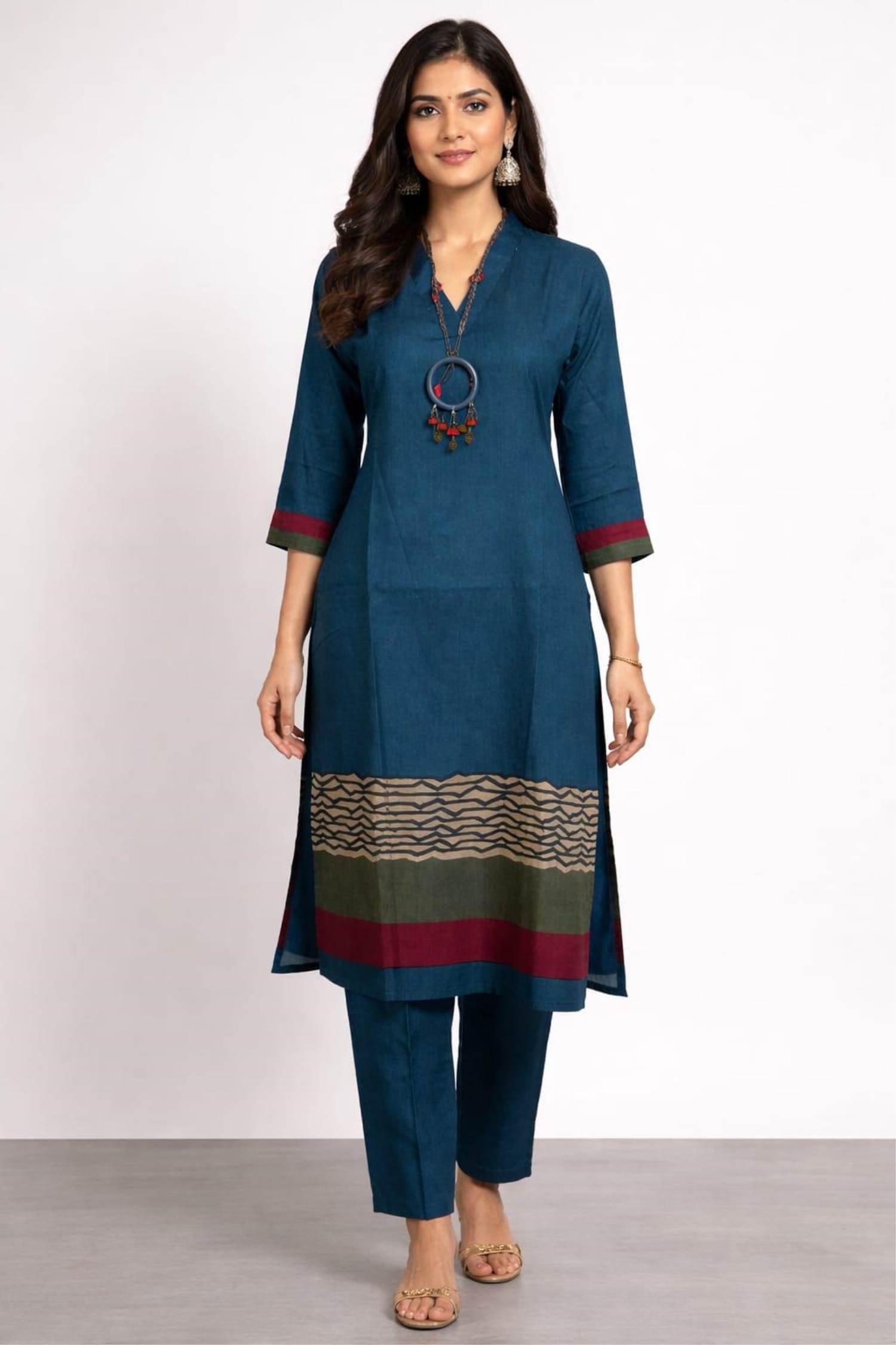 Blue Colour Designer Kurti Set With Necklace :: ANOKHI FASHION