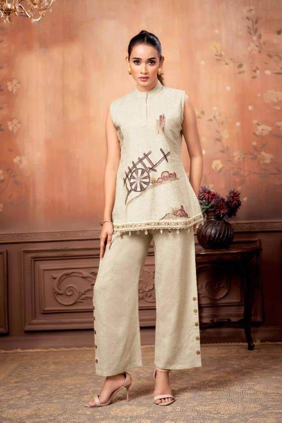 Cream Colour Summer Collection Designer CO-ORD Set :: ANOKHI FASHION
