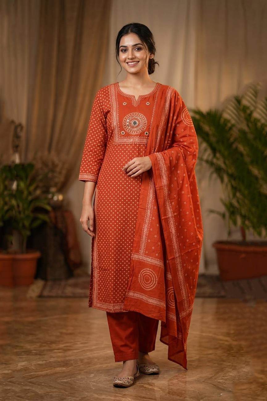 Rust Colour Pure Cottan Kurti Set With Dupatta :: ANOKHI FASHION
