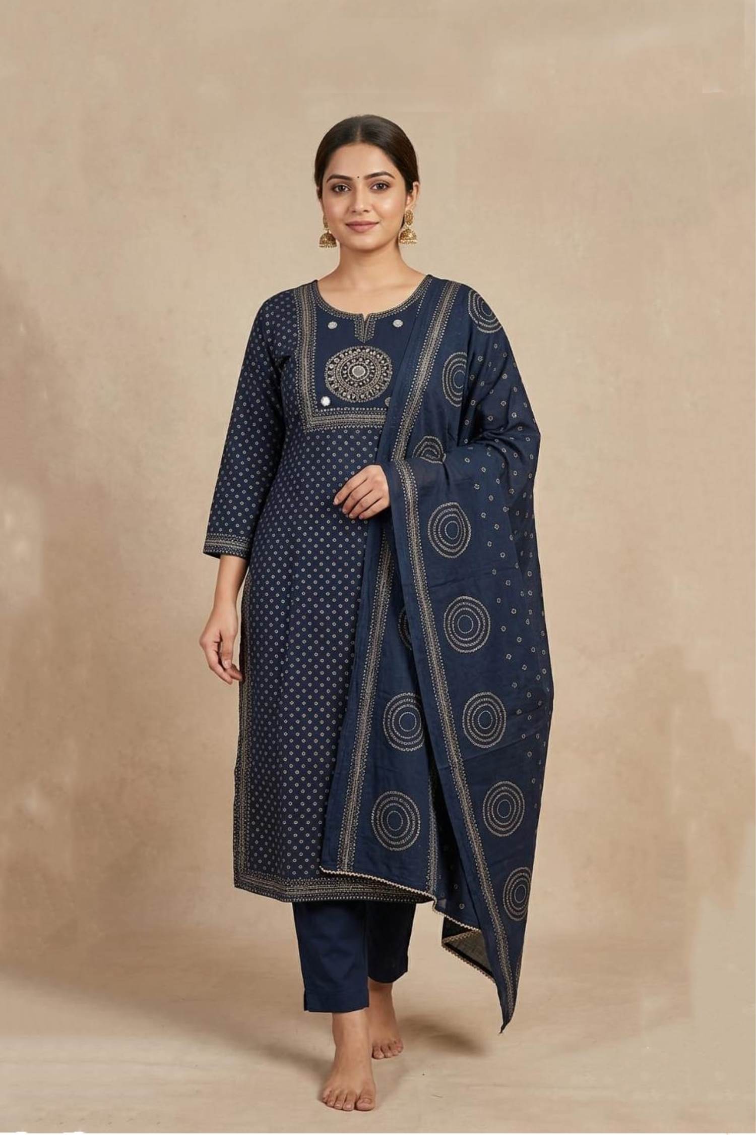 Navy Colour Pure Cottan Kurti Set With Dupatta :: ANOKHI FASHION