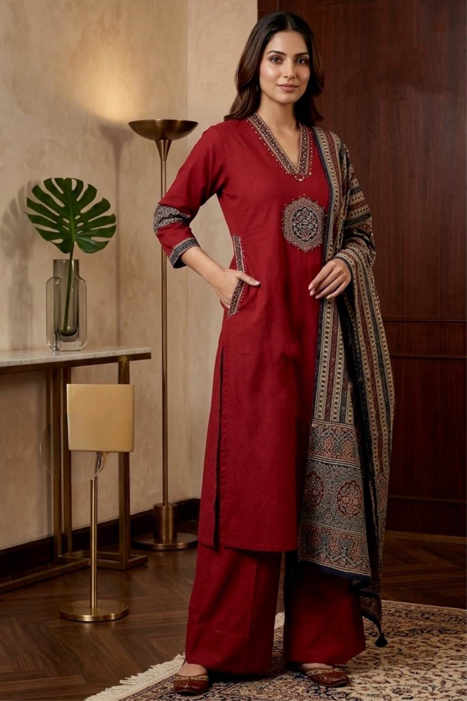 Maroon Colour Pure Cotton Kurti Set With Dupatta :: ANOKHI FASHION