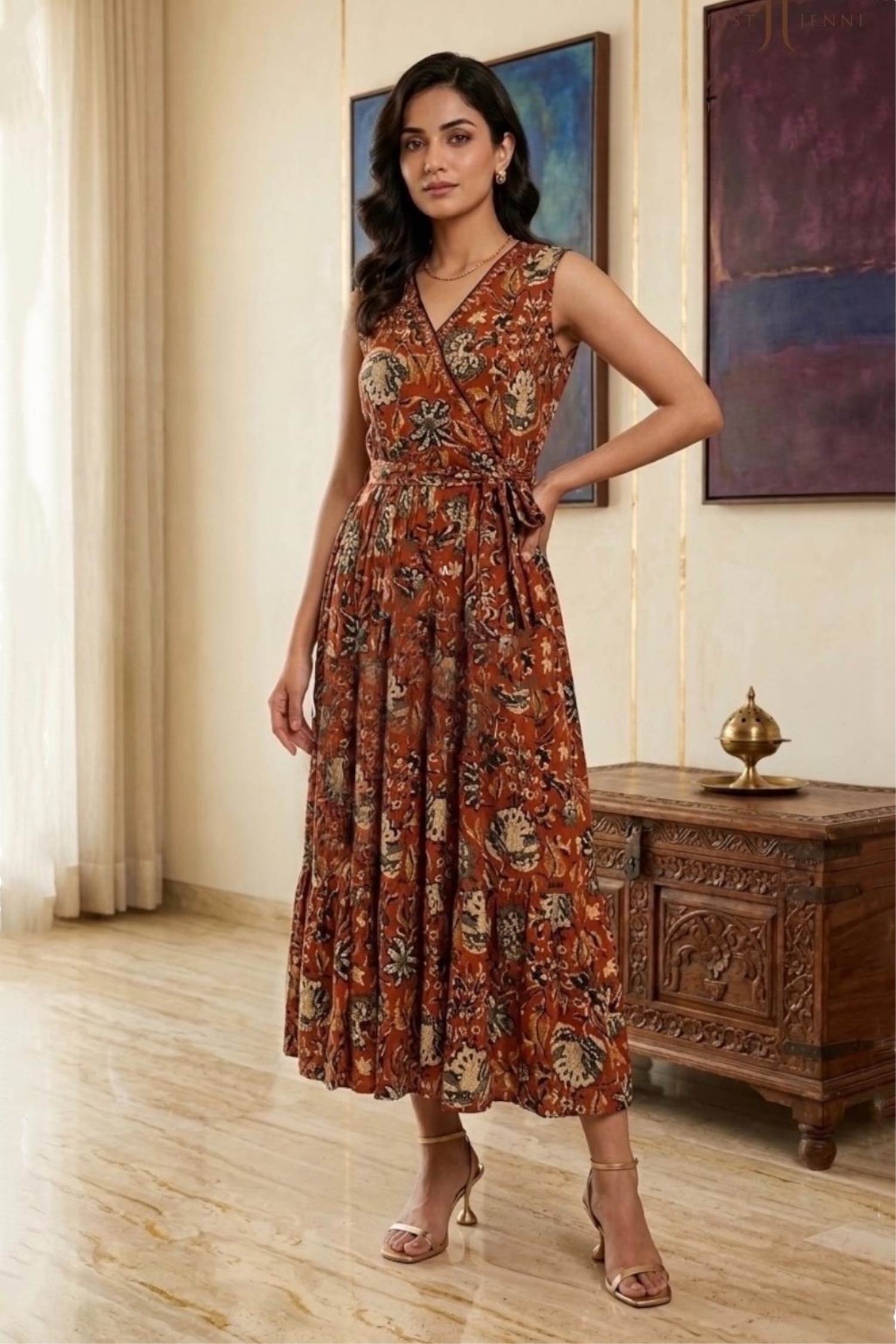 Rust Colour Designer Printed Gown Kurti :: ANOKHI FASHION