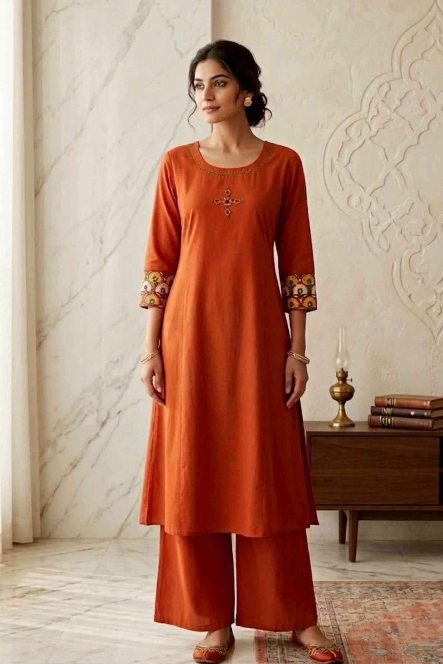 Rust Color Casual Collection Kurti Plazo :: ANOKHI FASHION