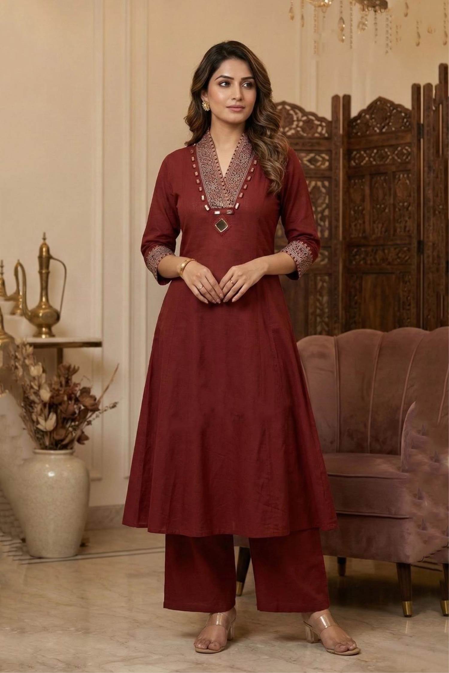 Maroon Colour Summer Collection Kurti With Plazo :: ANOKHI FASHION
