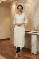 White Colour Lakhnavi Designer Straight Kurti :: ANOKHI FASHION