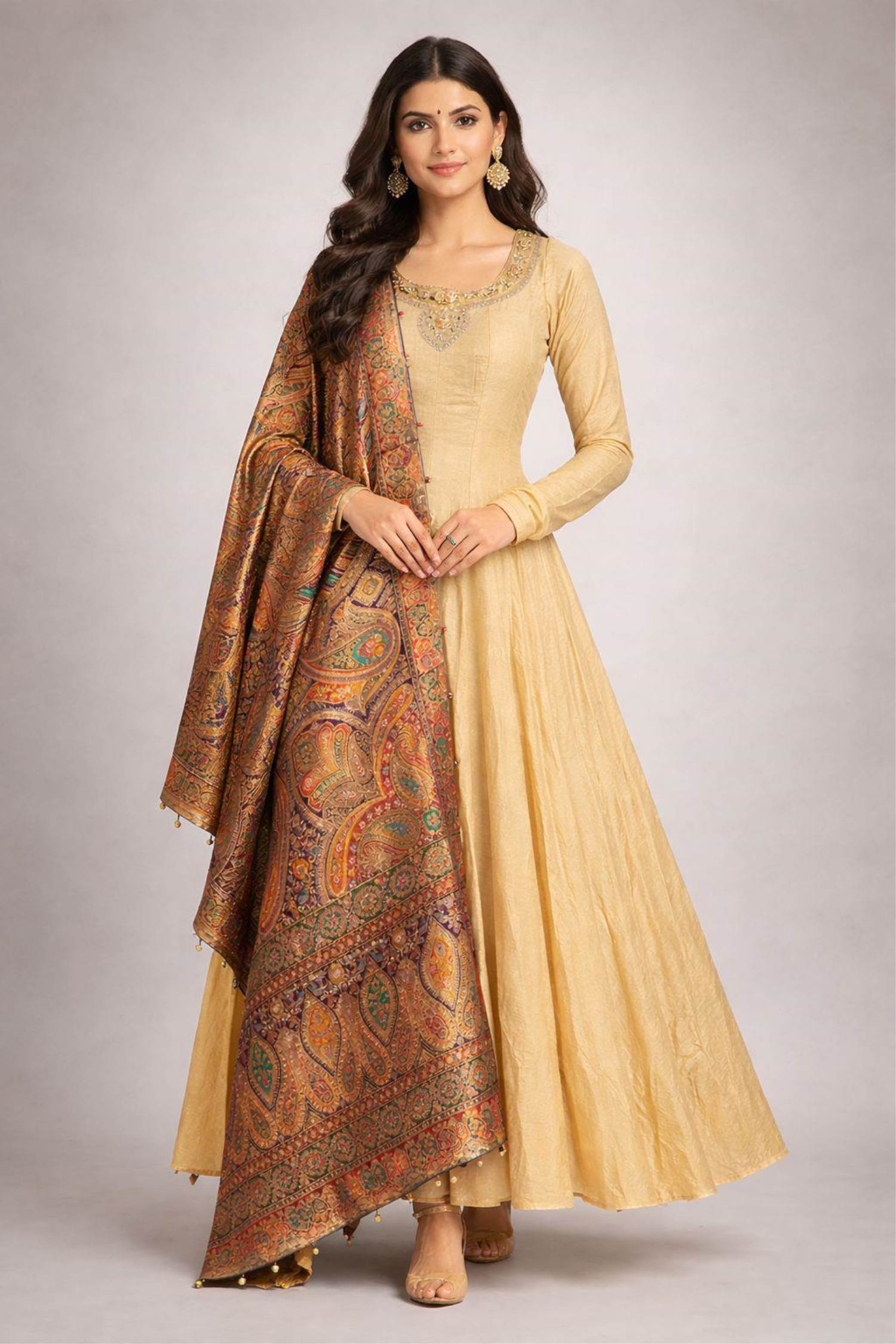 Chiku Colour Designer Party Wear Indo-Western Plazo Suit With Classic Dupatta :: ANOKHI FASHION