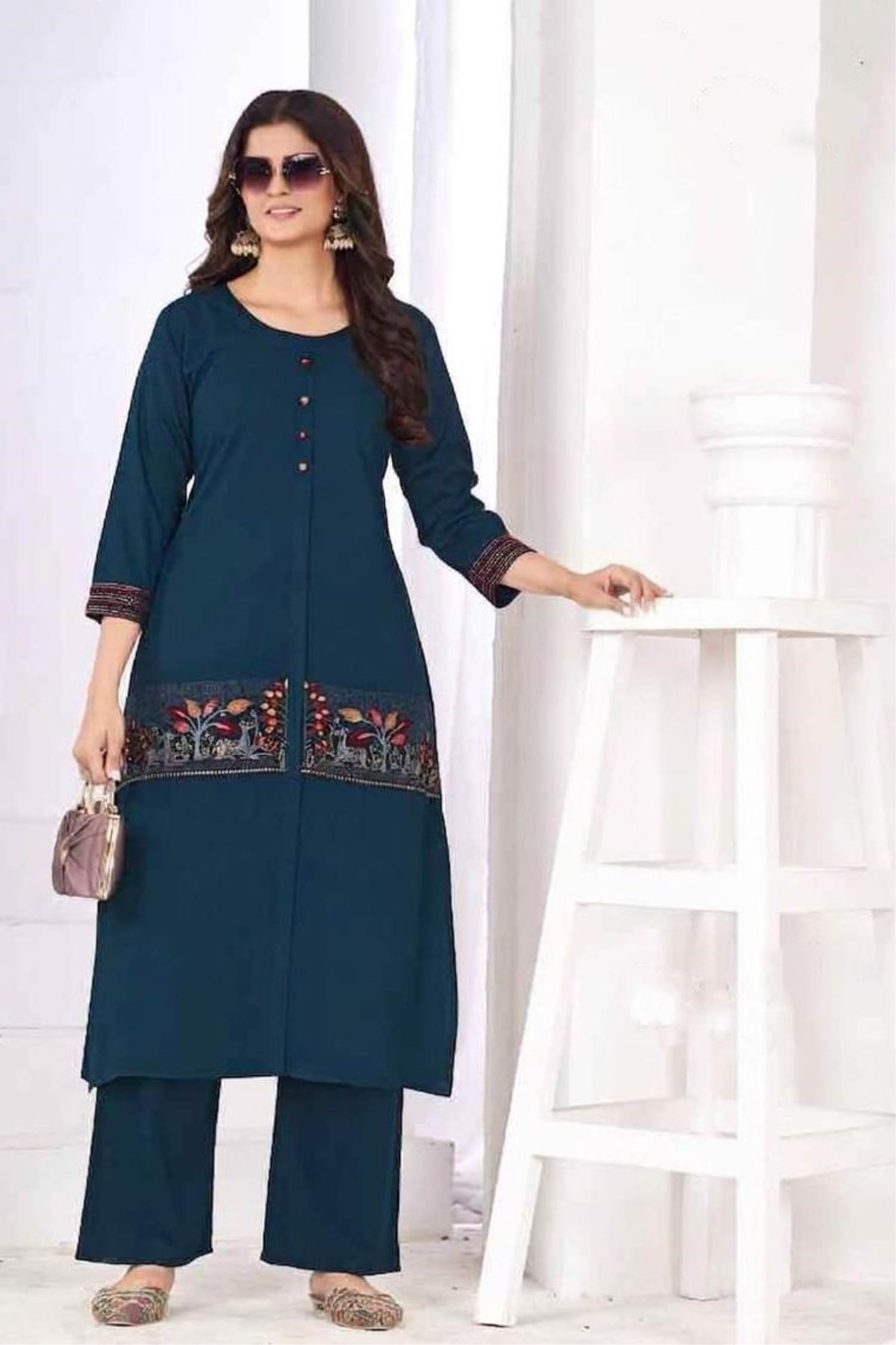 Blue Colour Pure Cotton Designer Kurti Set