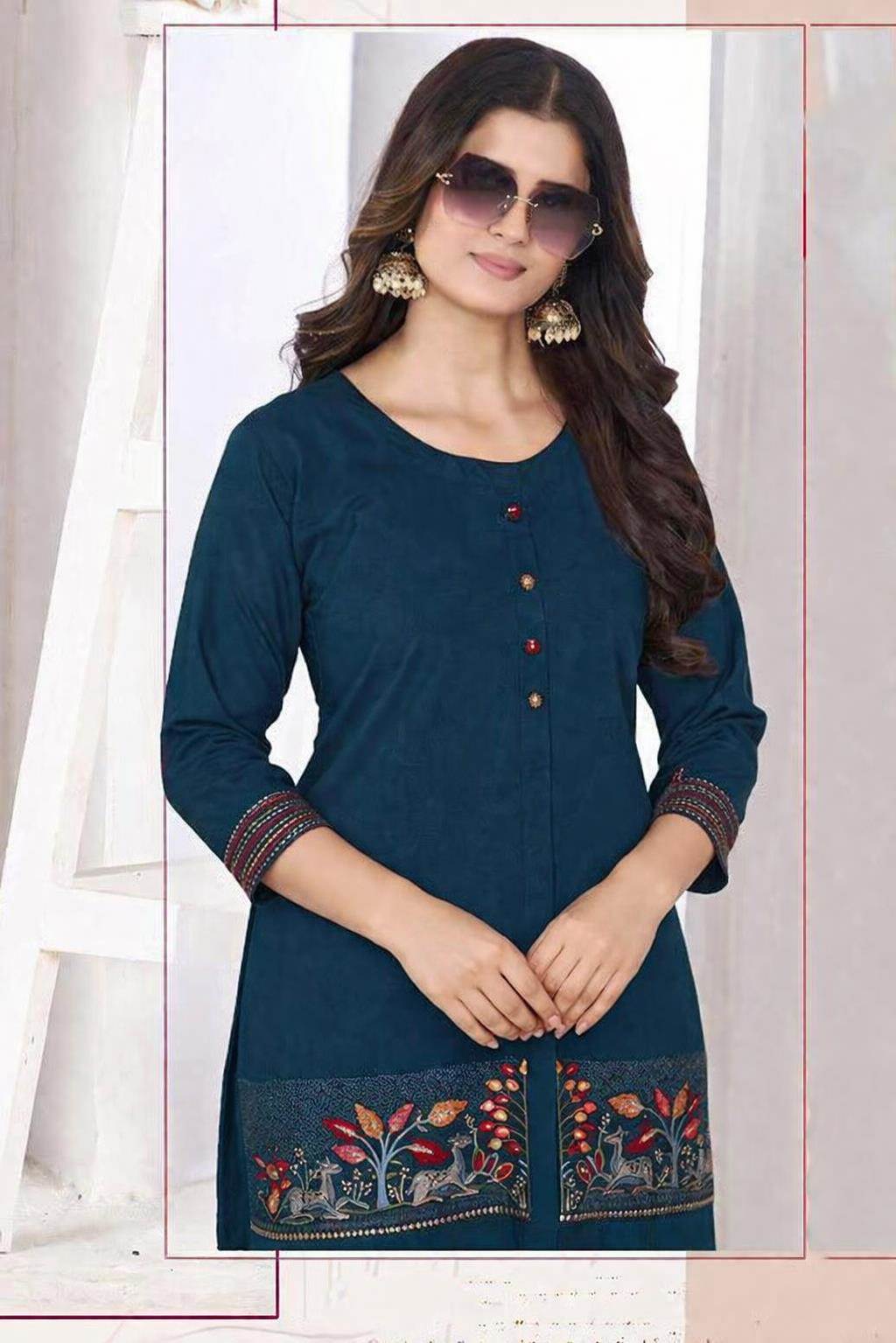 Blue Colour Pure Cotton Designer Kurti Set :: ANOKHI FASHION