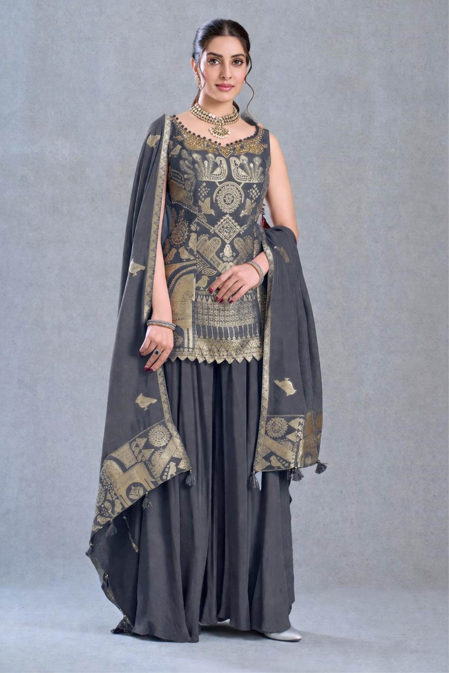 Grey Colour Designer Party Wear Indo-Western Suit :: ANOKHI FASHION