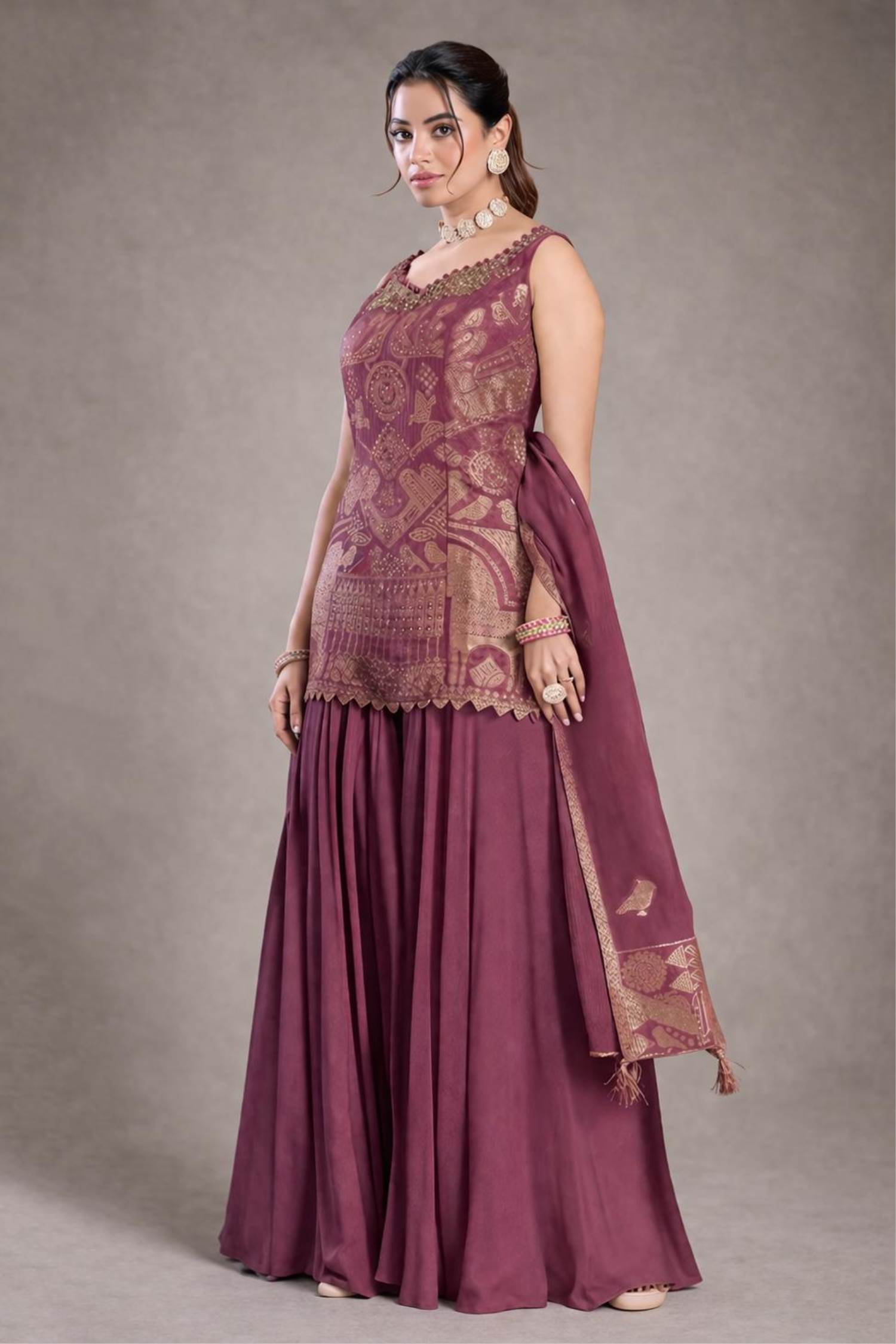 Gajari Colour Designer Party Wear Indo-Western Suit :: ANOKHI FASHION
