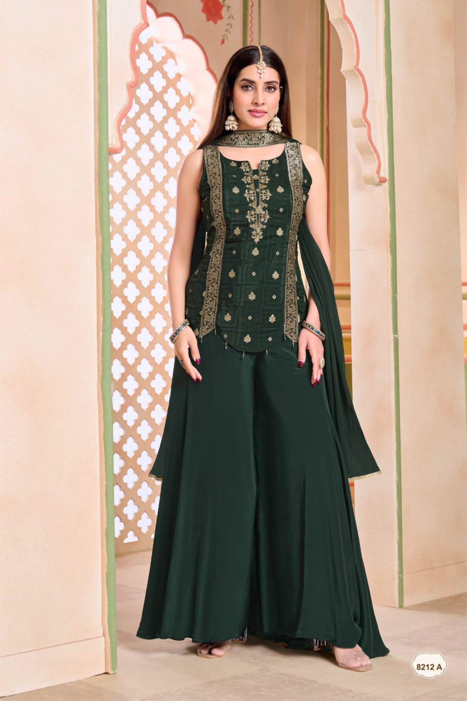Green Colour Party Wear Designer Indo-Western Plazo Suit :: ANOKHI FASHION