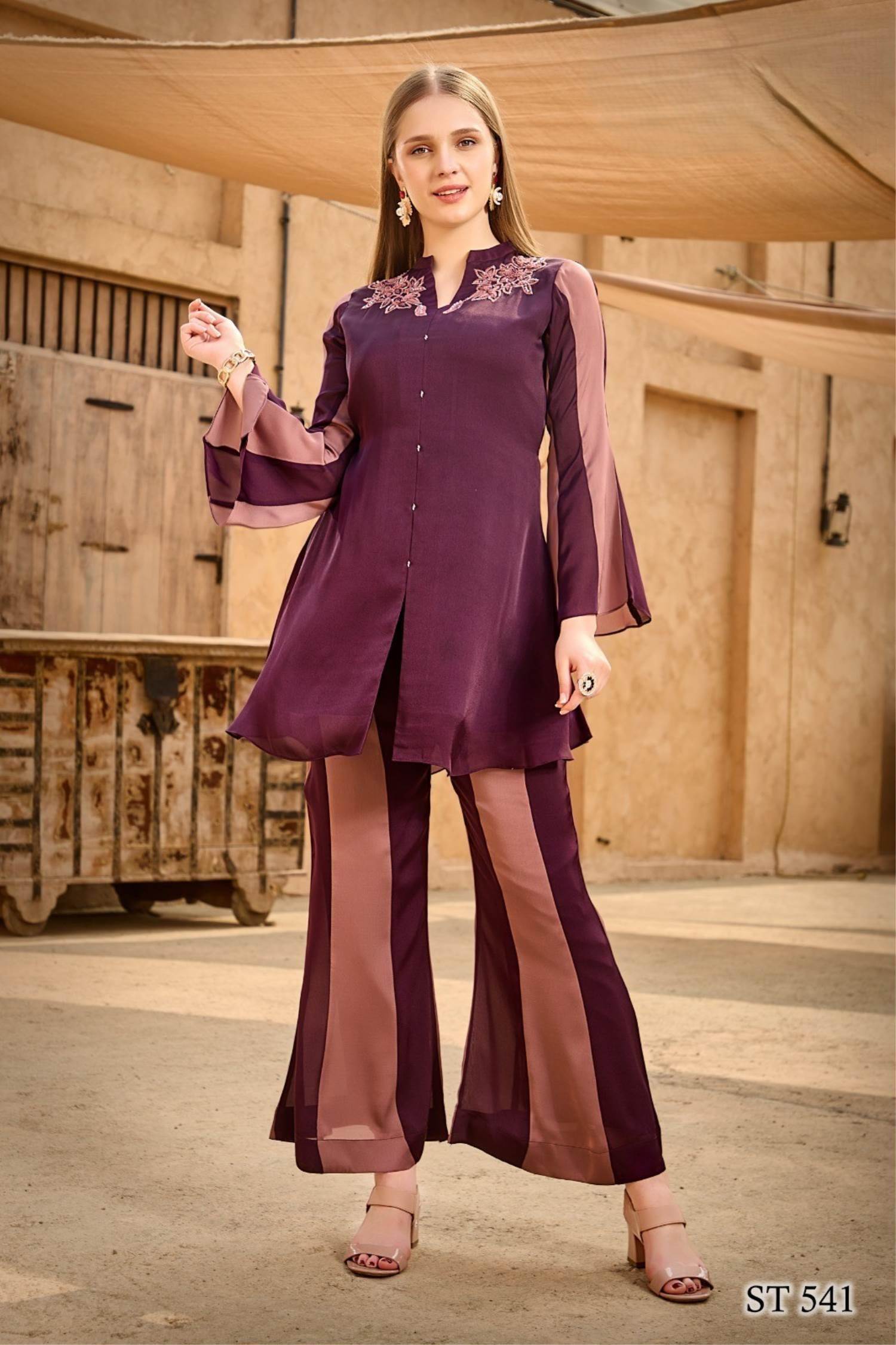 Wine Colour Designer Party Wear CO-ORD Set :: ANOKHI FASHION