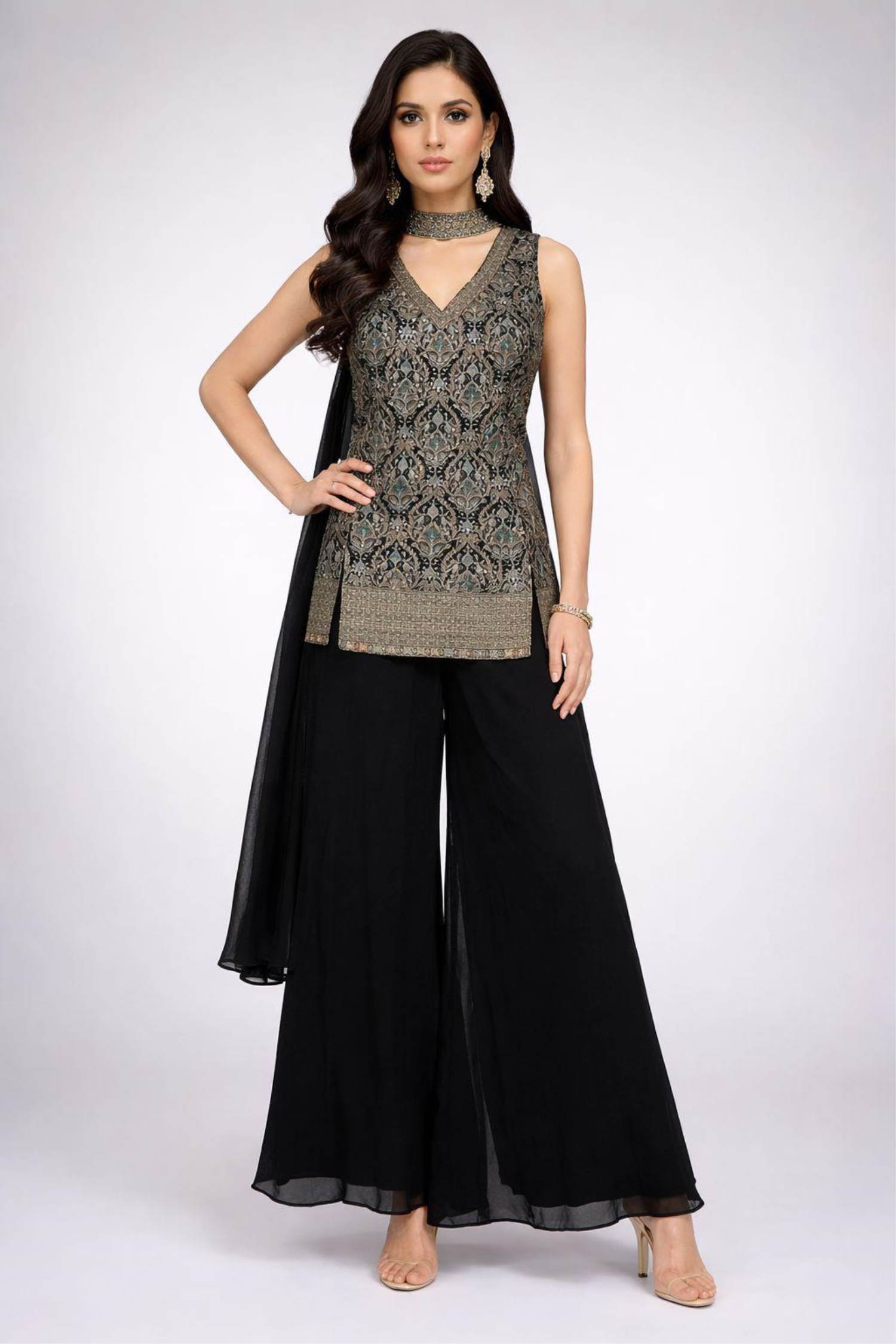 Black Colour Party Wear Designer Indo-Western Plazo Suit :: ANOKHI FASHION