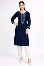 Denim Blue Colour Casual Wear Straight Kurti :: ANOKHI FASHION