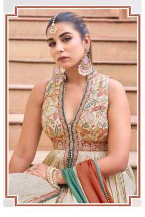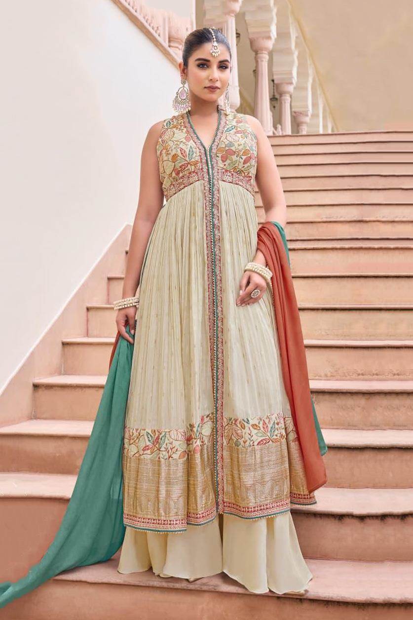 Cream Colour Designer Party Wear Plazo Suit