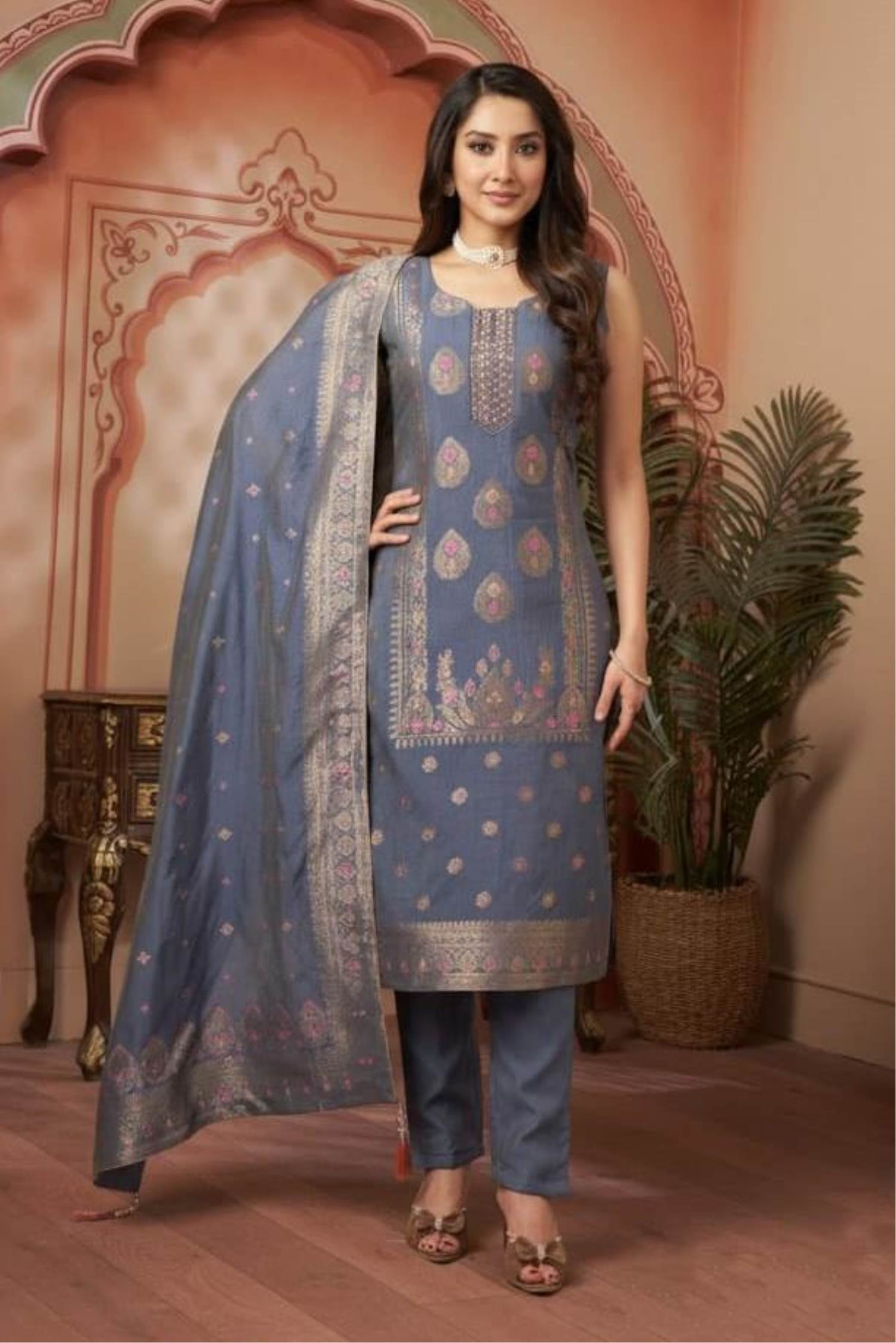 Gray Colour Party Wear Designer Straight Long Suit :: ANOKHI FASHION