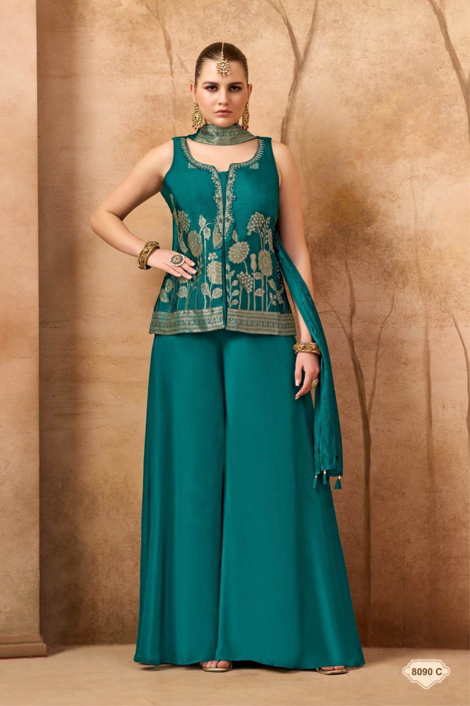 Rama Color Party Wear Designer Indo-Western Plazo Suit