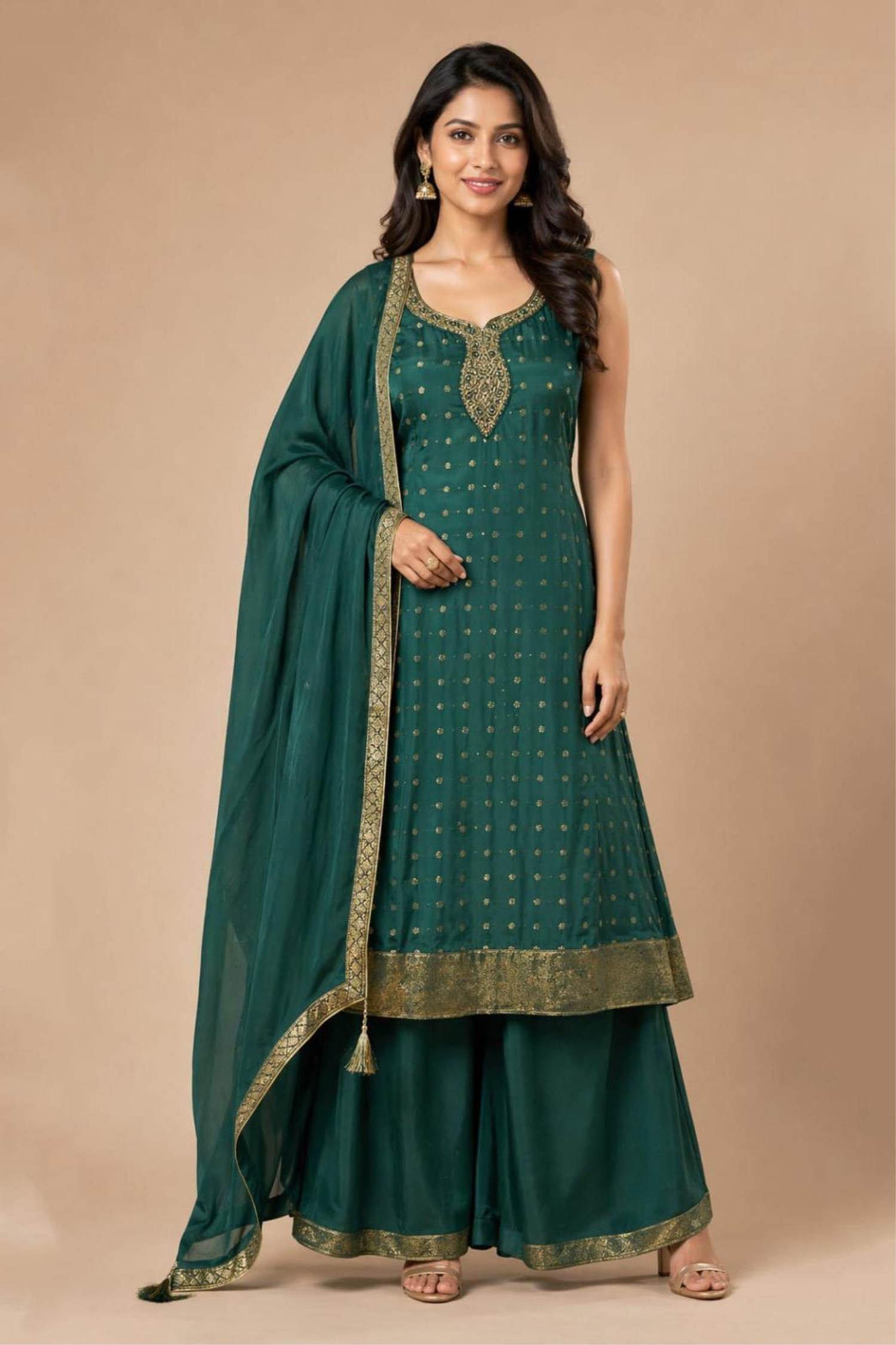 Green Colour Designer Party Wear Plazo Suit :: ANOKHI FASHION