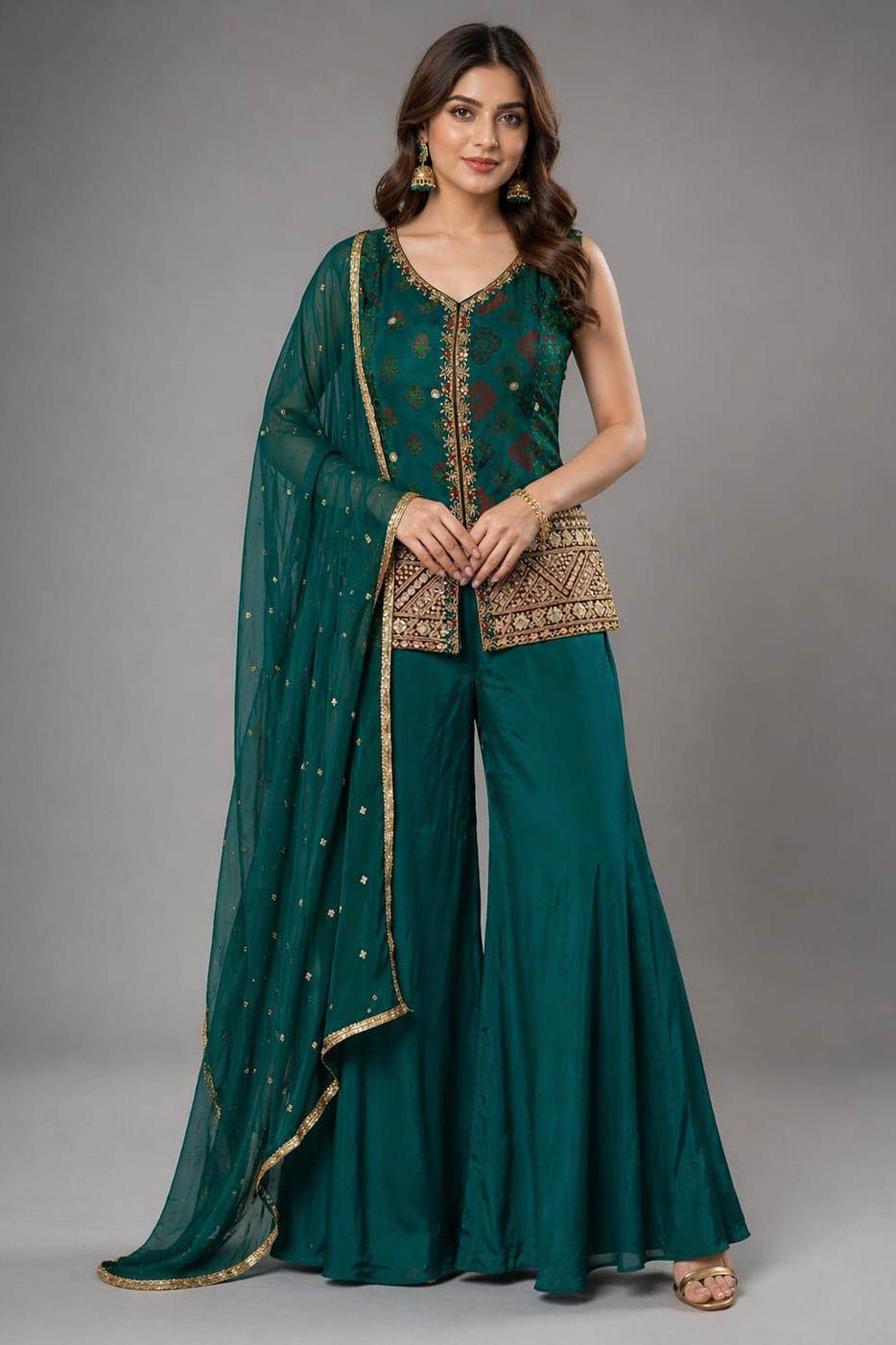 Green Colour Designer Party Wear Indo-Western Suit :: ANOKHI FASHION