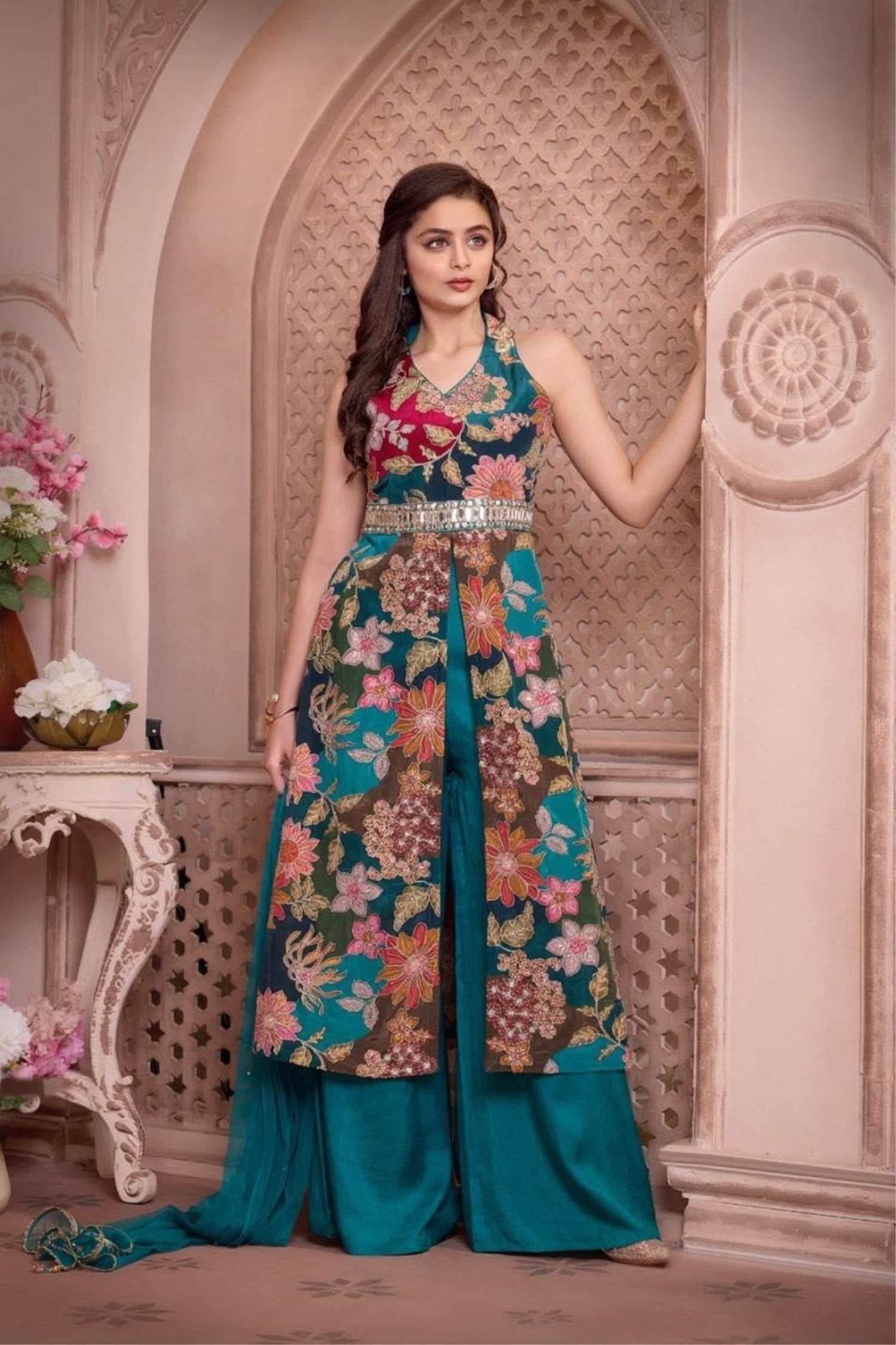 Rama Colour Designer Party Wear Girl's Wear Indo-Western Suit :: ANOKHI FASHION