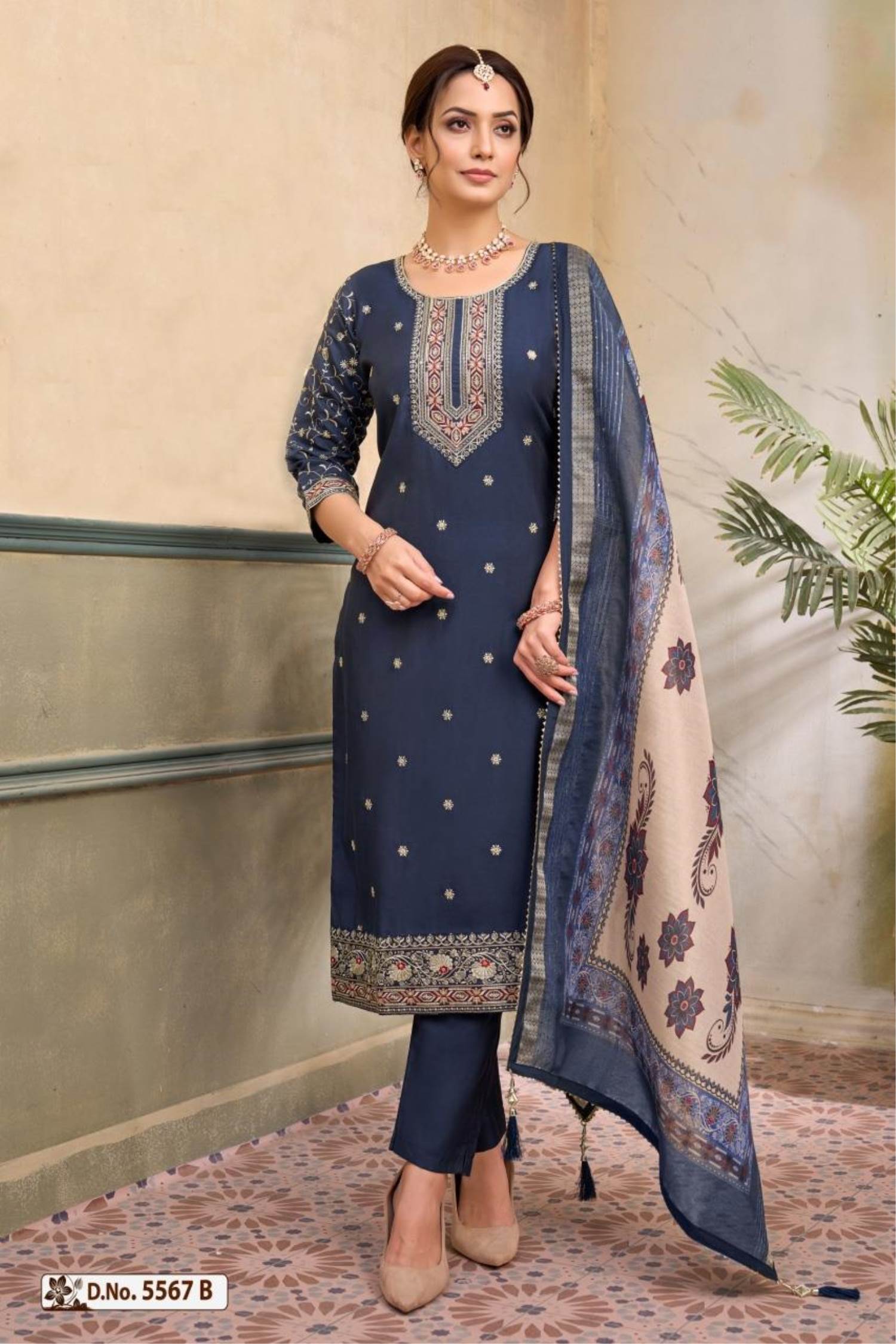 Navy Colour Designer Party Wear Straight Long Suit :: ANOKHI FASHION