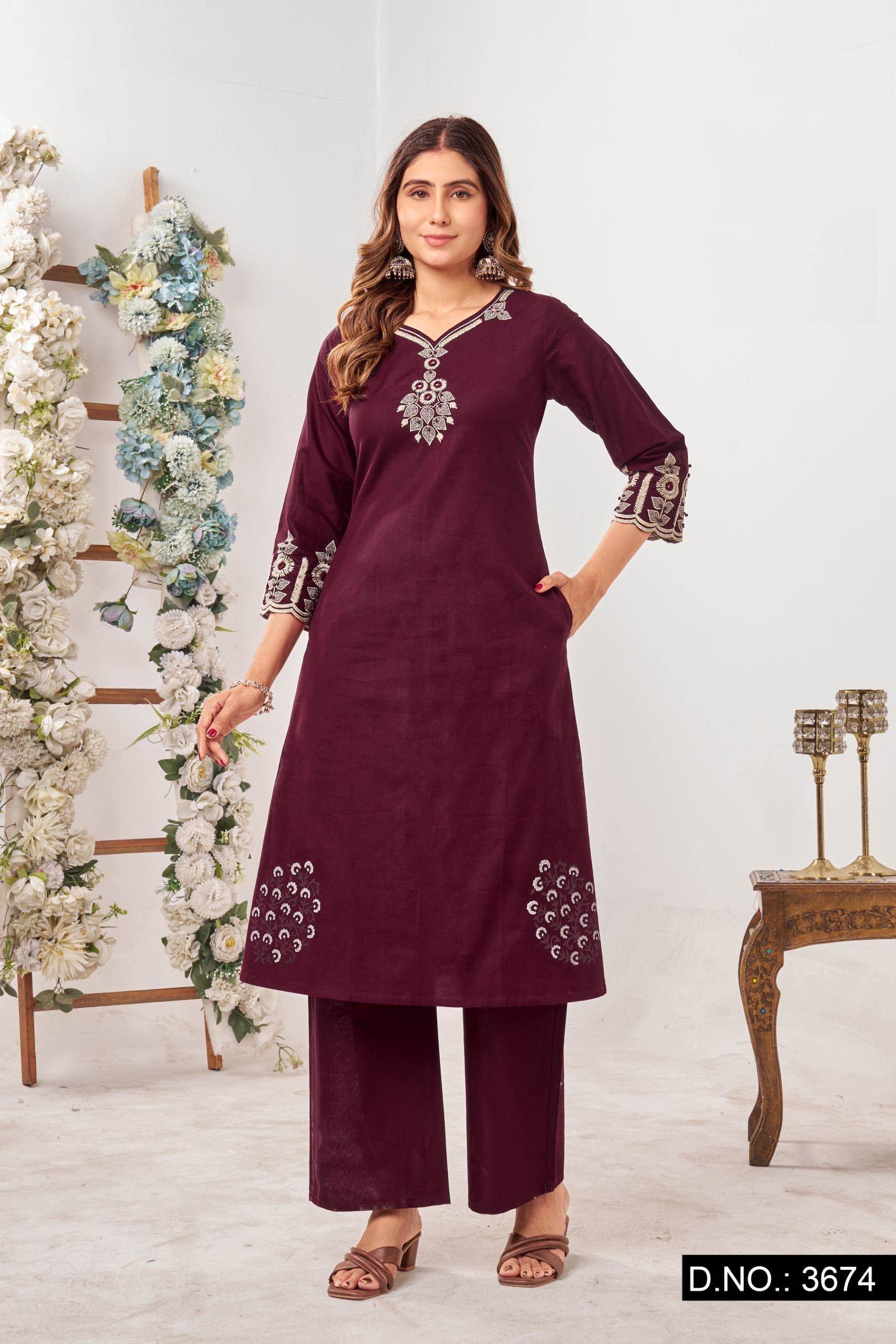 Maroon Colour Summer Collection Kurti Set :: ANOKHI FASHION