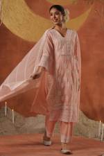 Lemon Colour Pure Lakhnavi Designer Kurti Set With Dupatta