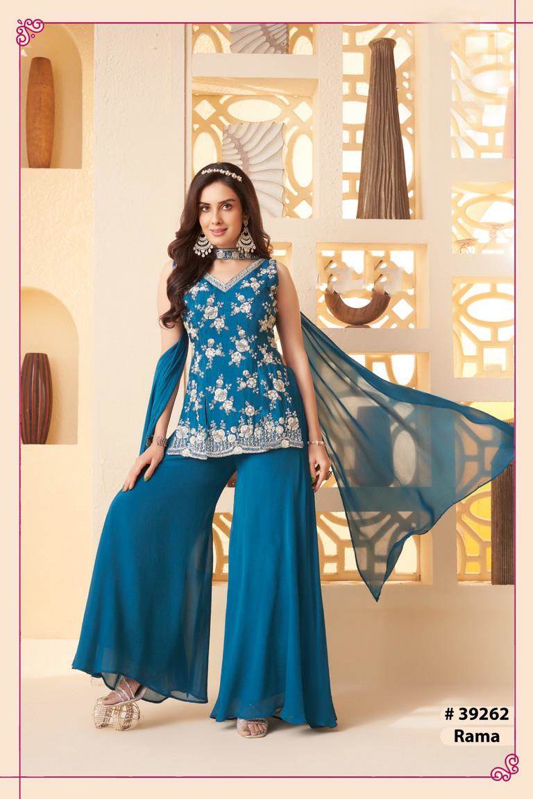 Rama Color Party Wear Designer Indo-Western Plazo Suit
