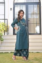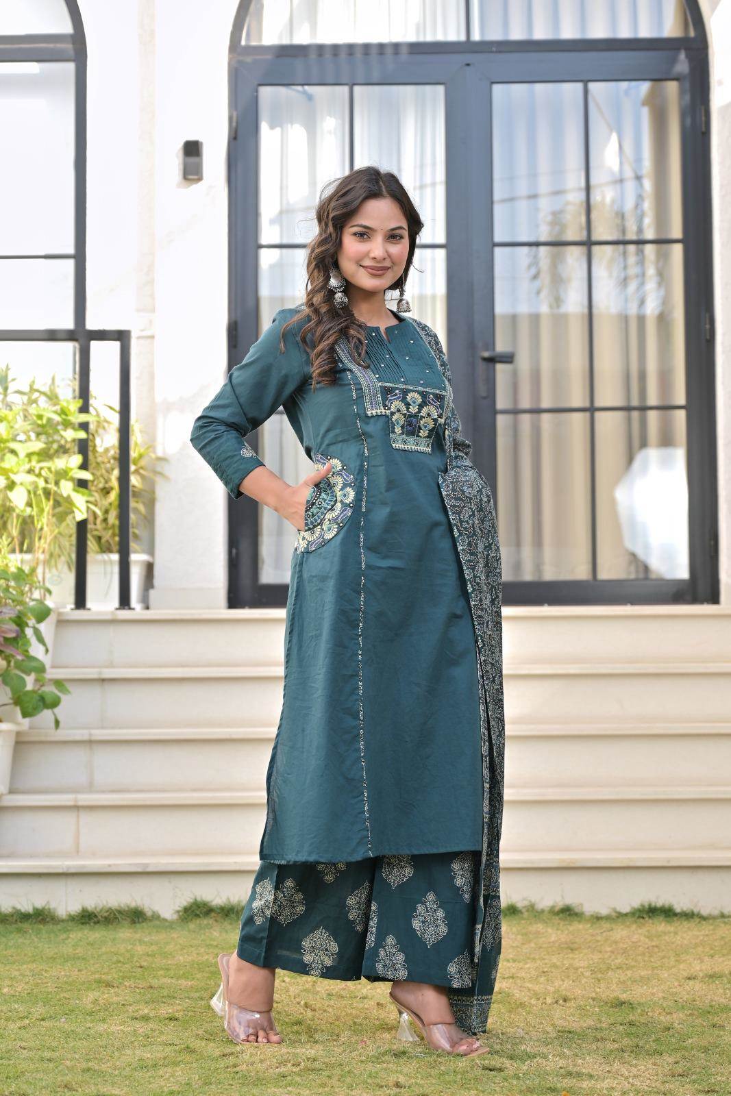 Peacock Colour Summer Collection Designer Kurti Set With Dupatta :: ANOKHI FASHION