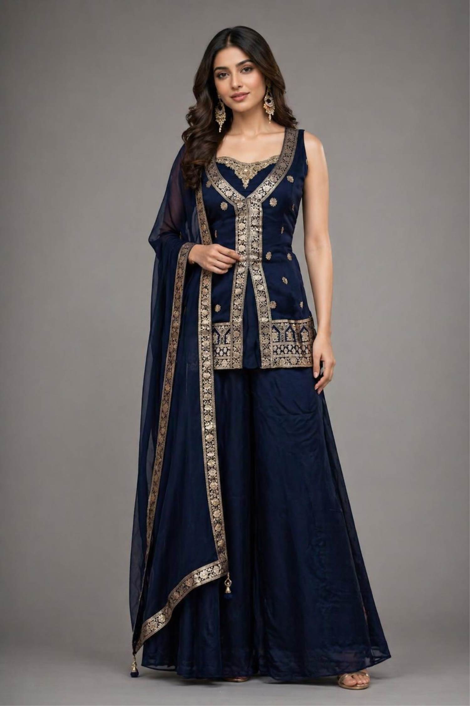 Blue Colour Designer Party Wear Indo-Western Suit :: ANOKHI FASHION