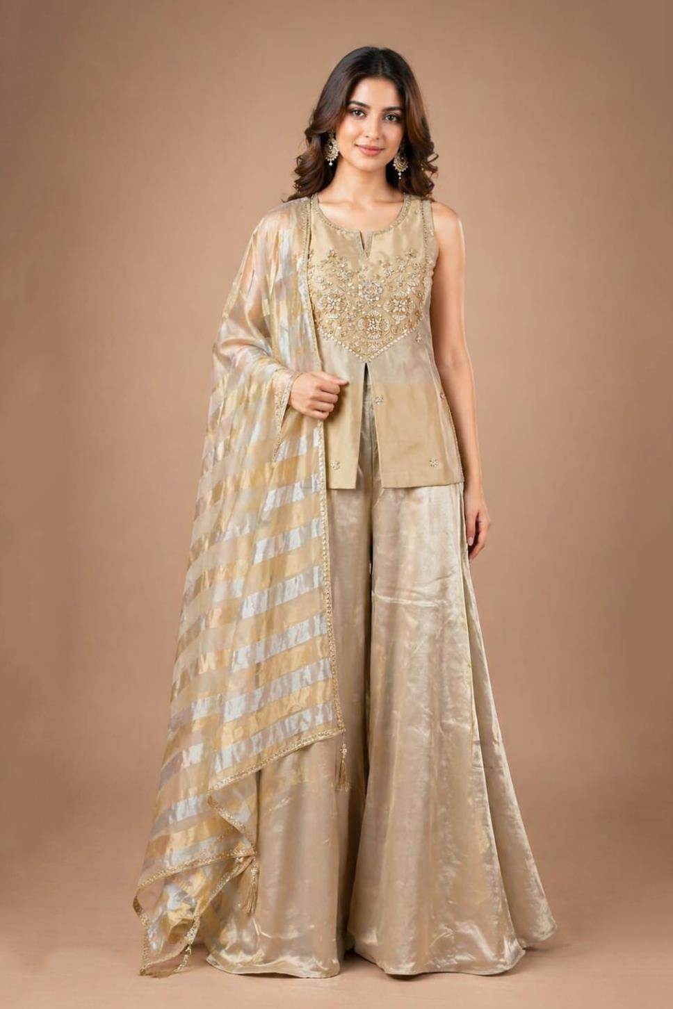 Base Colour Designer Party Wear Indo-Western Suit :: ANOKHI FASHION