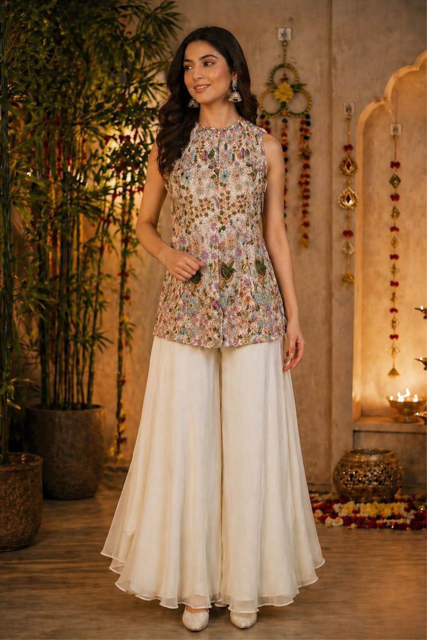 White Color Party Wear Designer Indo-Western Plazo Suit :: ANOKHI FASHION